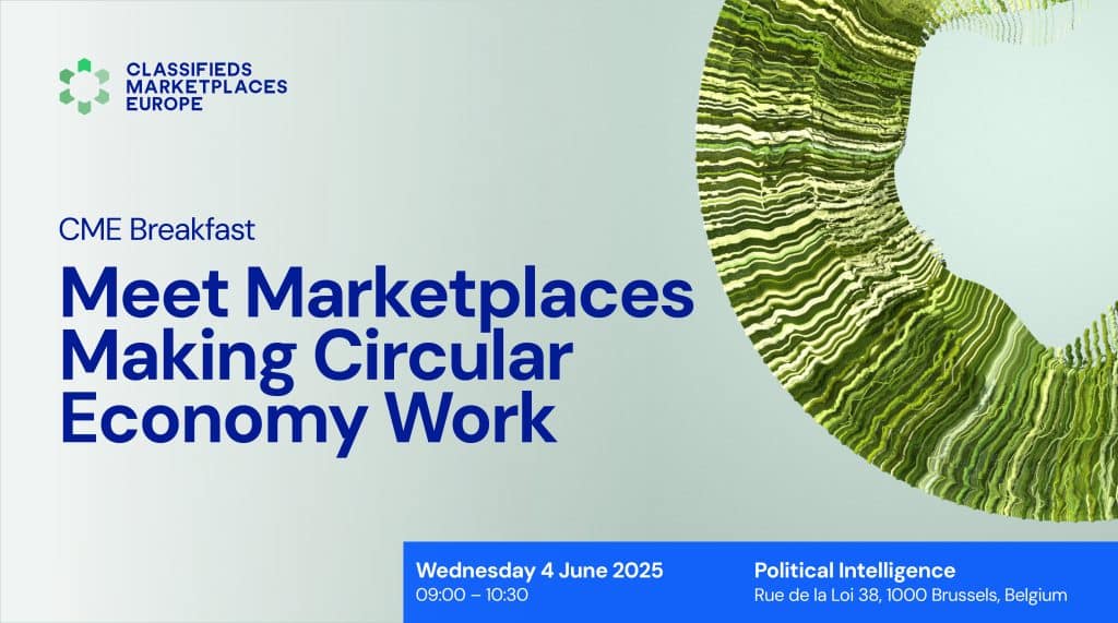 As part of EU Green Week 2025, this breakfast event will explore the important role of the European recommerce sector as a sustainable alternative to ecommerce platforms. The session will bring together leading European online classifieds marketplaces and policymakers to discuss how recommerce contributes to developing the circular economy in Europe. Representatives from Adevinta, OLX Group, Vend and Vinted, members of Classifieds Marketplaces Europe (CME) will share insights on how second-hand platforms contribute to a greener and more circular future and how policy can further support the sector’s growth and impact.